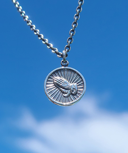 925 Sterling Silver Circle Praying Hands Necklace